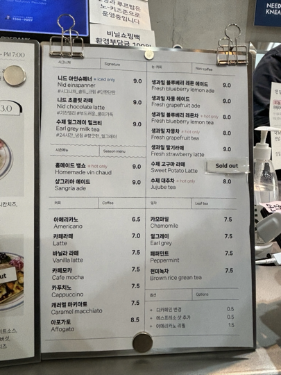 - 주요 메뉴: 커피, 베이커리(문원동 시골빵, 소금빵, 브런치)