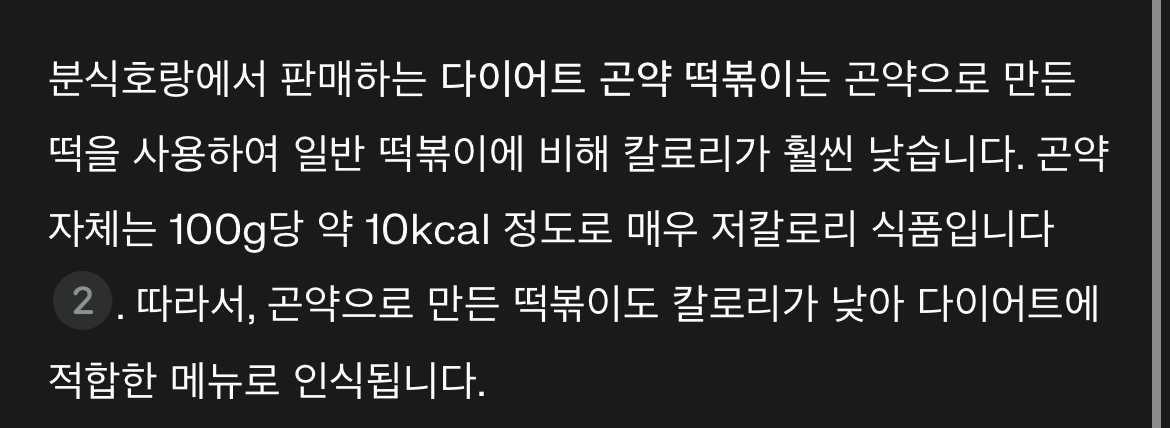 AI에게 물어보니..곤약 떡볶이는 100g당 10Kcal로 낮은 칼로리를 가졌다고 합니다.