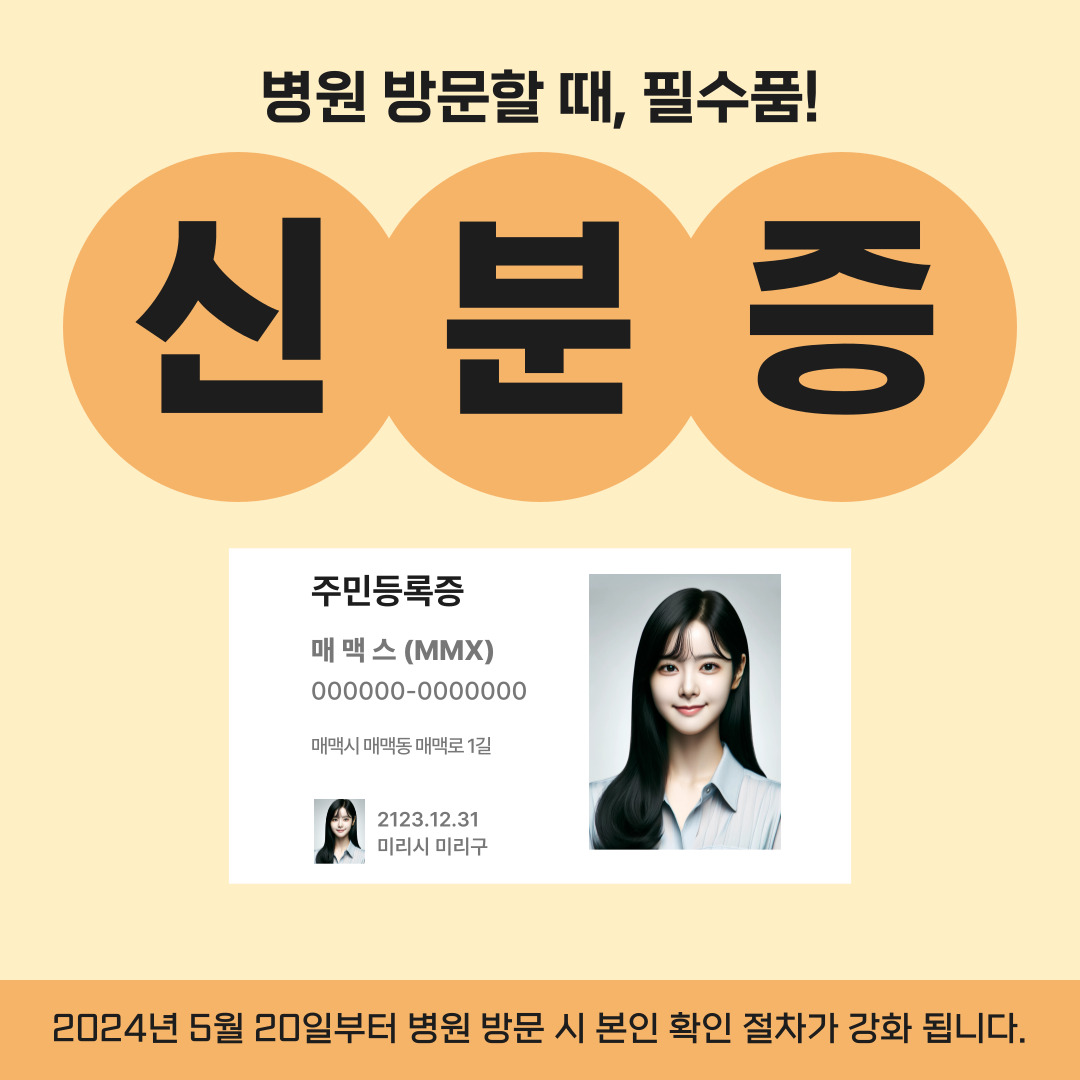 우리 모두 병원을 방문할 때는 신분증을 반드시 지참해서