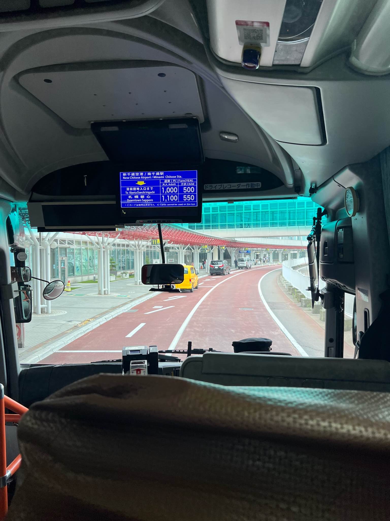 버스 요금은 인당 1,100엔이며 현금만 받는 기계군요!