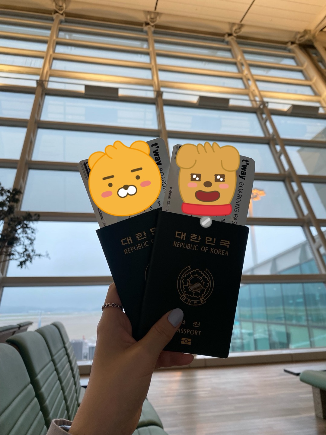 처음 입국 심사를 끝내고 나오시면 도라에몽이 보일 텐데요, 도라에몽은 잠깐만 보시고 국제선 3층으로 이동해 주세요.