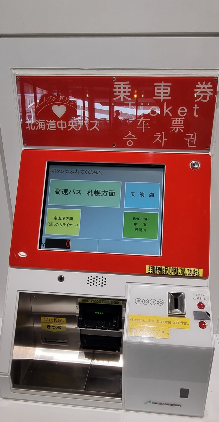 이후 아래 발권기 또는 판매원을 통해 스스키노 티켓을 구매해 주시면 됩니다.