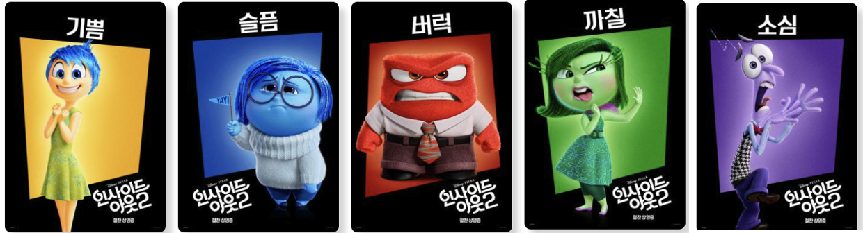 인사이드 아웃 1의 등장인물인 라일리의 사춘기와 함께 찾아온 새로운 감정들이 등장합니다.