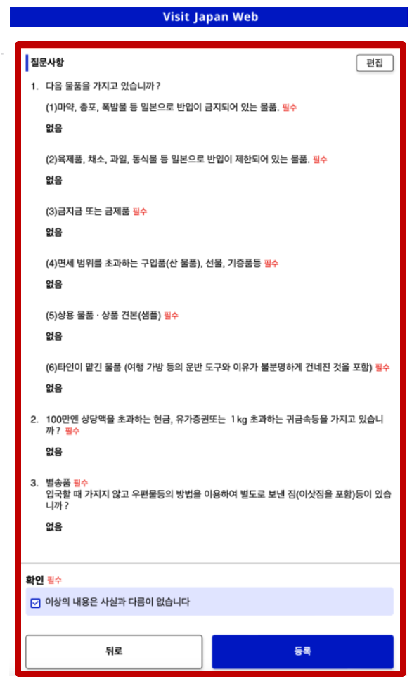 - 동반가족이 있다면 '동반가족의 휴대폼 및 별송품을 한꺼번에 신고'해당 항목이 있을 겁니다.