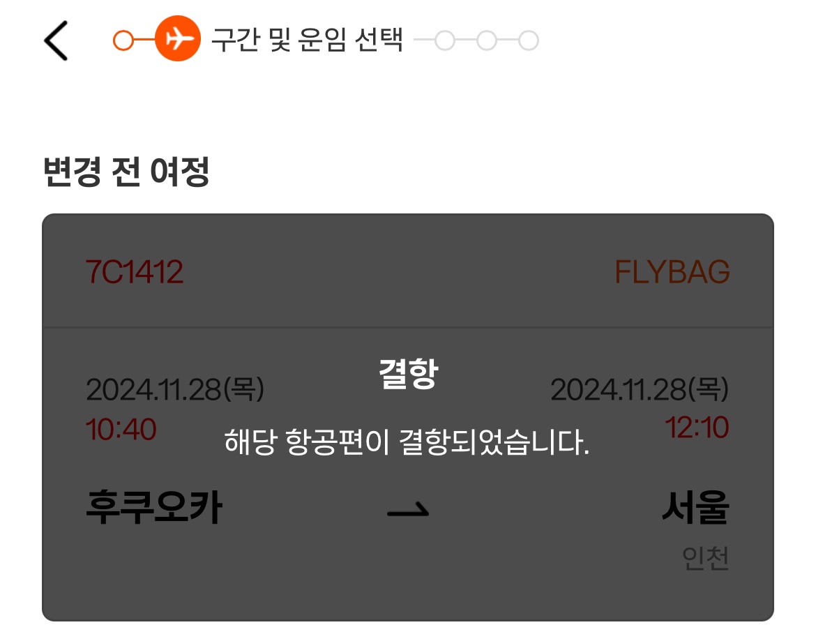 12시간 이내 대체편을 제공하지 못하면 전액 환급과 함께 바우처를 제공합니다.