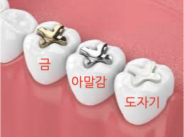 충치 치료에 사용되는 금, 도자기, 아말감은 각각 고유이 장단점이 있습니다.