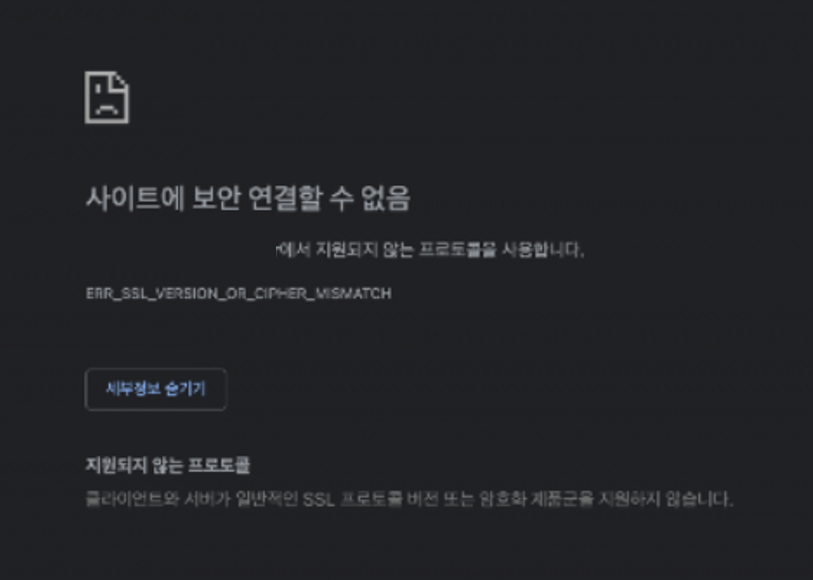 크롬/웨일 오류 'ERR_SSL_VERSION_OR_CIPHER_MISMATCH 사이트에 보안 연결할 수 없음' 해결하기