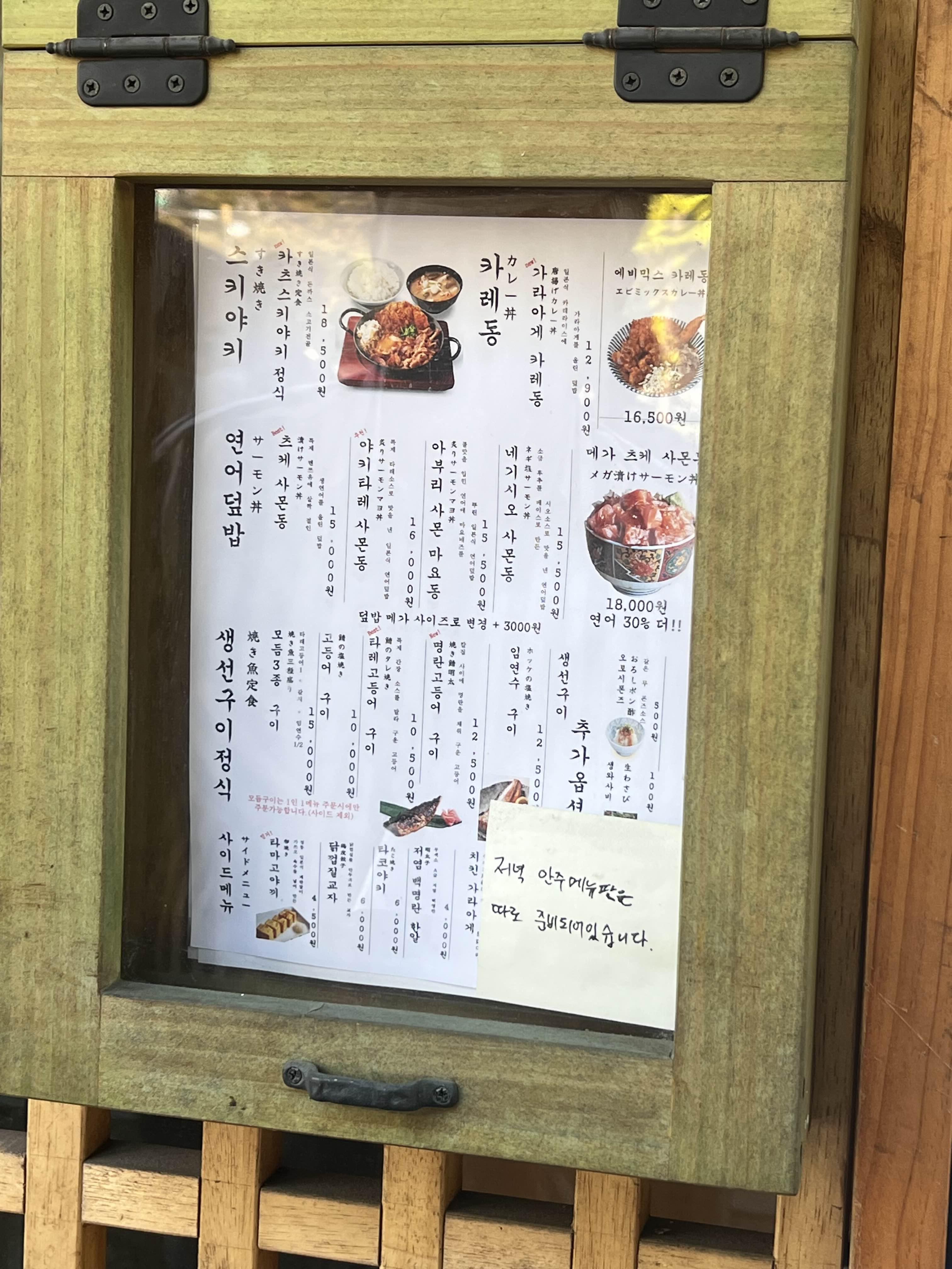 웨이팅을 하는 동안 밖에 있는 메뉴판을 통해 무슨 메뉴가 있나 보는데 다 먹고 싶네요..