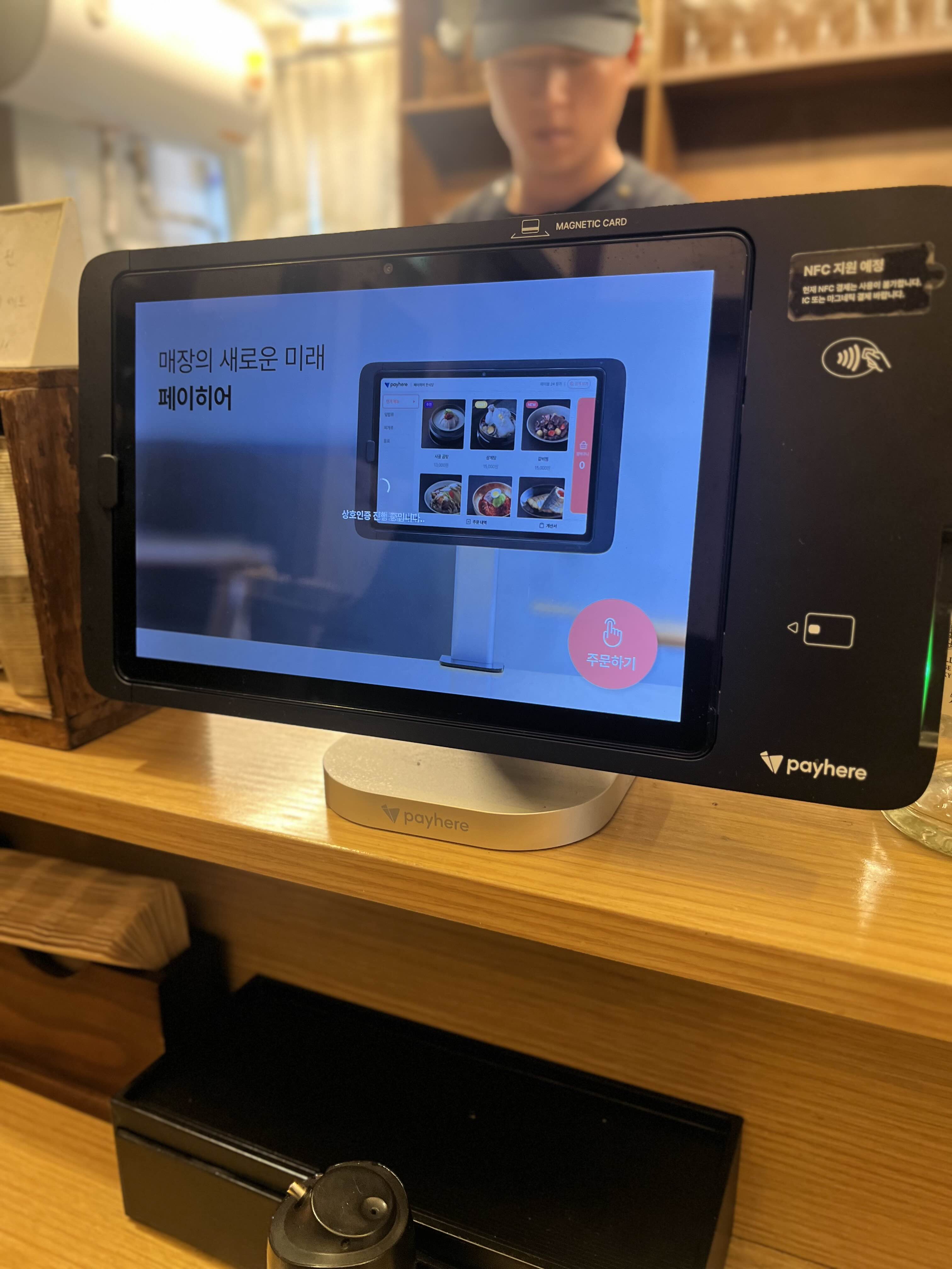메인 메뉴는 웨이팅을 하면서 주문 했는데요, 자리에 있는 키오스크로도 주문이 가능하답니다.