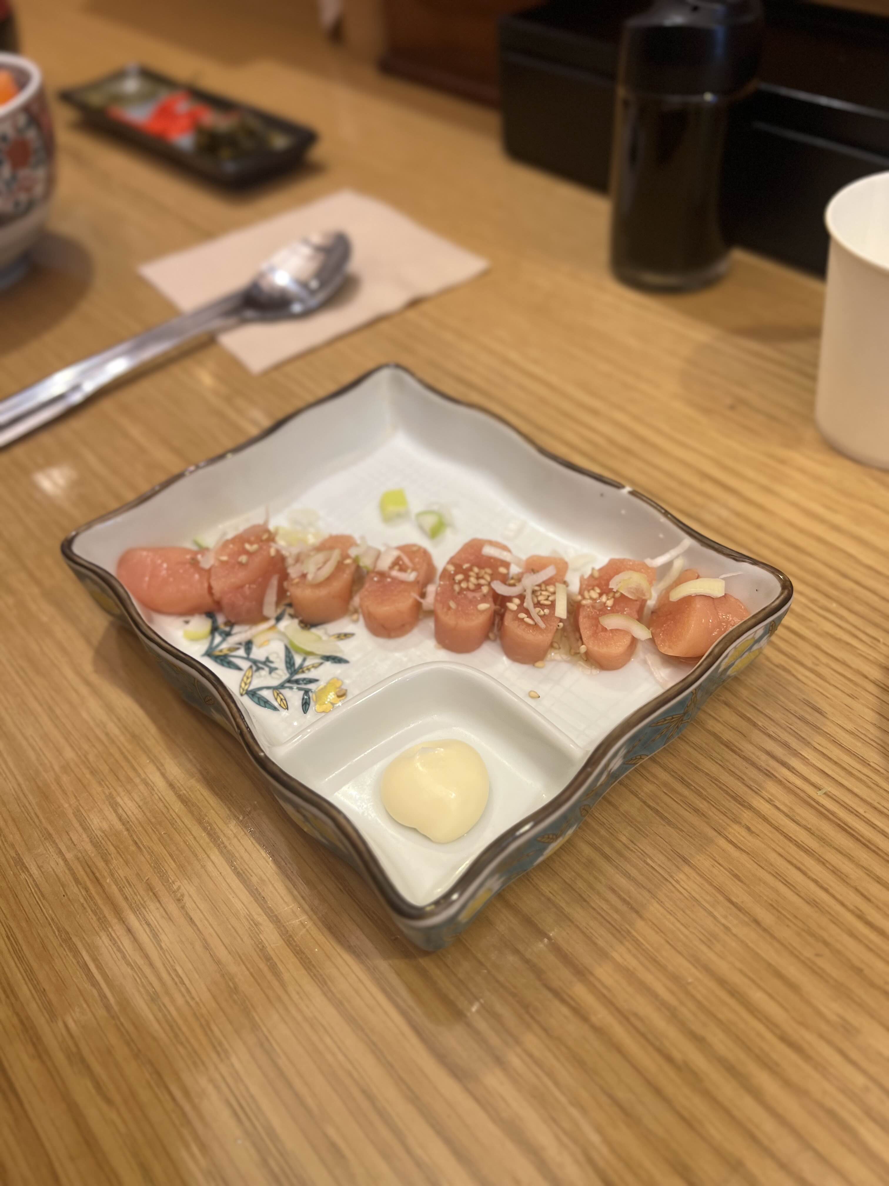 먼저 일식당에서 제가 가장 좋아하는 저염 백명란이 등장했습니다.