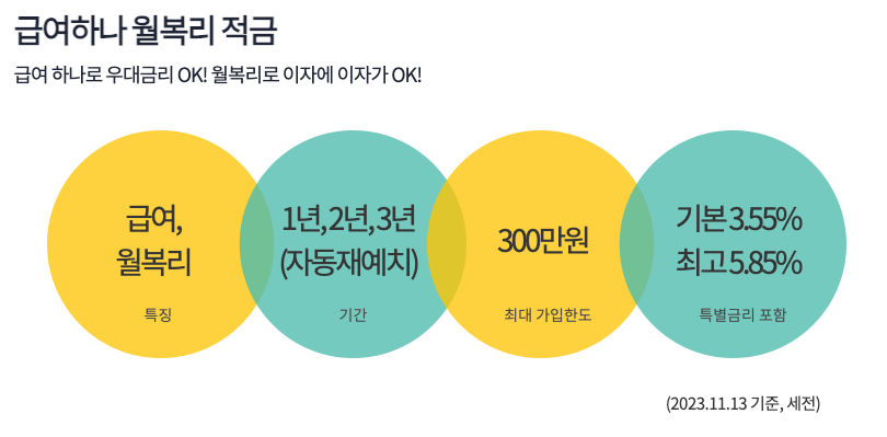 하나은행의 '급여하나 월복리 적금'은 일복리 방식으로,
