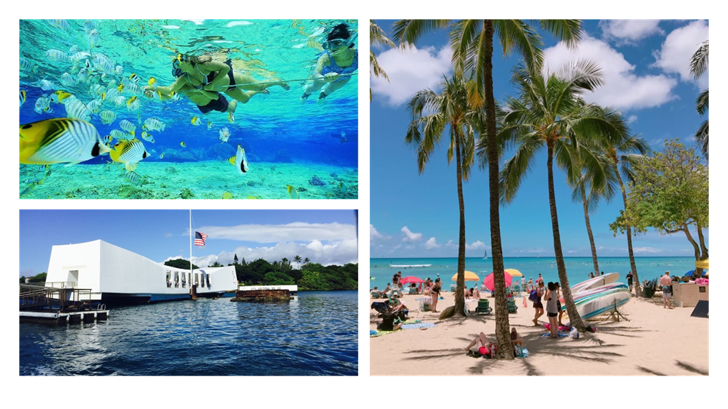 - 볼거리: 와이키키 해변, 하나우마 베이, 펄하버 등