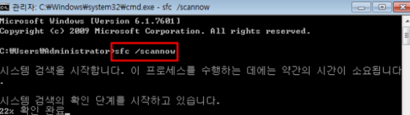 - `sfc /scannow` 명령어를 입력하여 시스템 파일 검사를 수행합니다.